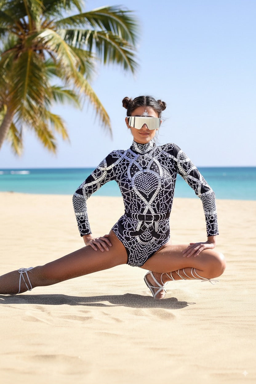 Descubre el elegante Body Claudia, meticulosamente adornado con pedrería de exterior exclusiva, aplicado a mano para un brillo deslumbrante. Ideal para eventos formales, festivales, fiestas de Halloween y celebraciones de Año Nuevo, este cuerpo es la elección perfecta para destacar en cualquier ocasión especial.